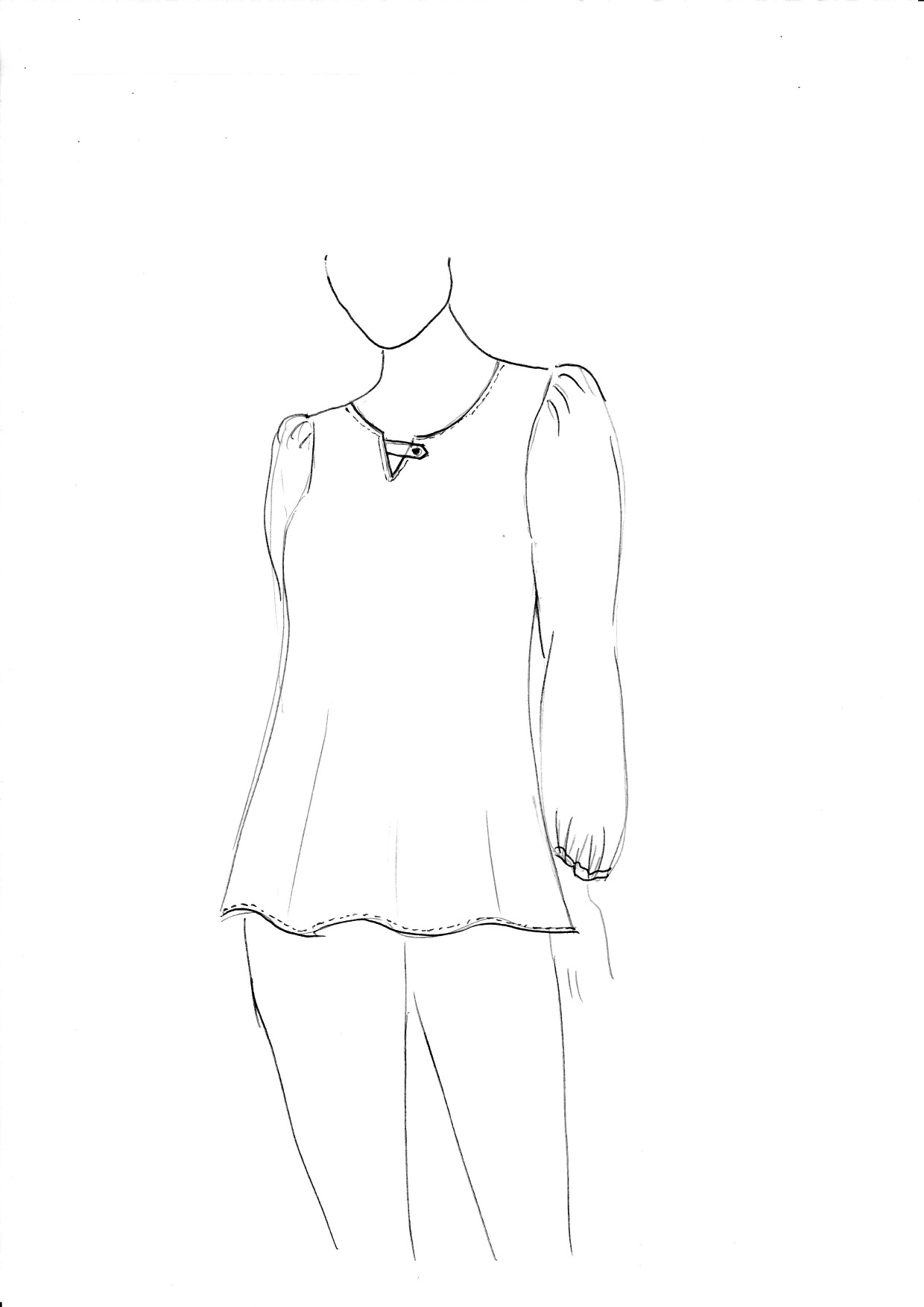 Adatta a tessuti leggeri e cascanti. Dal taglio morbido, scollo ovale con piccola V ed alamaro nel centro davanti. Maniche con arricciatura sulla spalla ed arricciate al polso con elastico. Disponibile in tutte le taglie o adattandolo alle vostre misure.